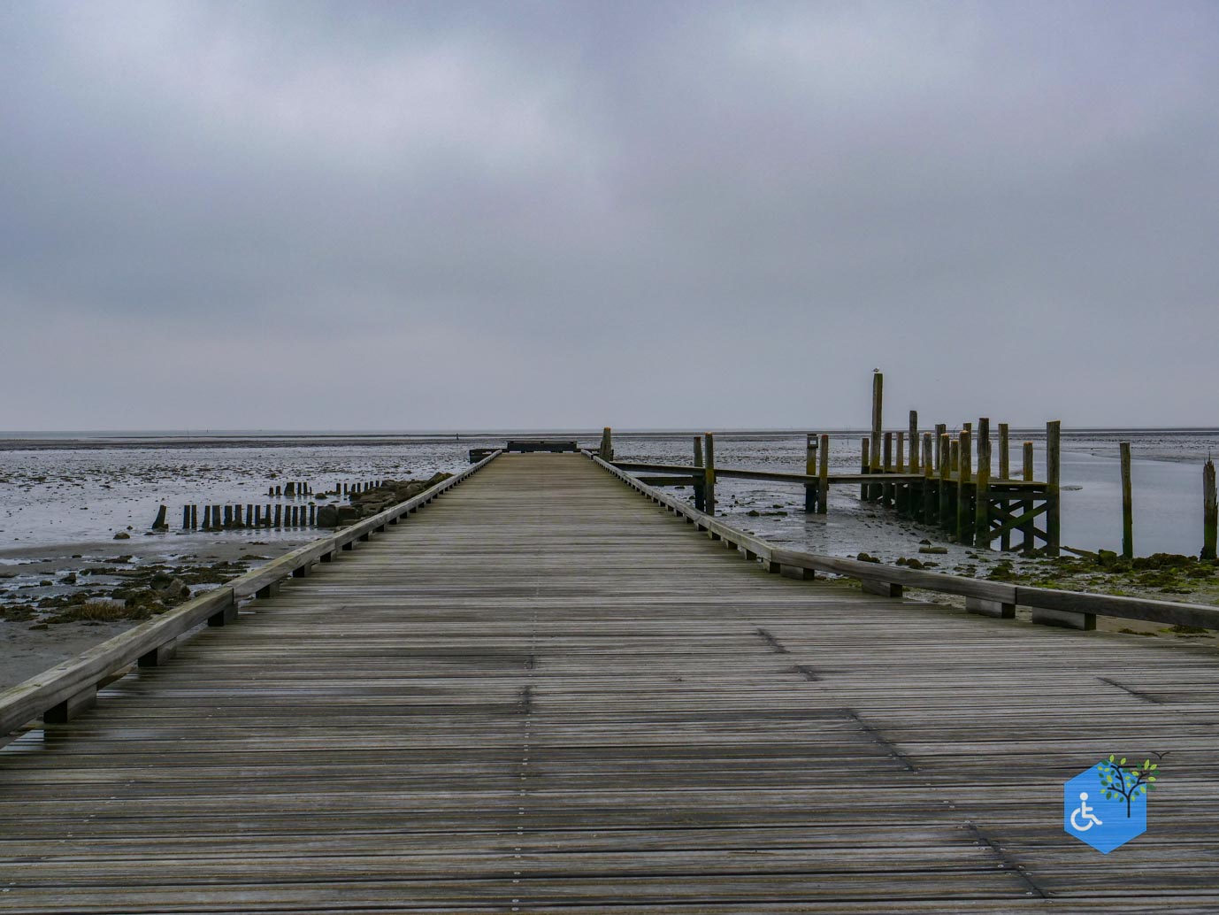 Vanaf het gemaal gaat de route de dijk over, dit is een vrij steile helling. Eenmaal op de dijk heb je een goed uitzicht over het haventje en de Waddenzee. Wanneer je naar beneden gaat kom je net voor de steiger een stukje tegen waar zand zich ophoopt bij hoog water. Onder het zand zit nog asfalt, maar we raden wel aan een begeleider mee te nemen vanwege dit zand en de helling.