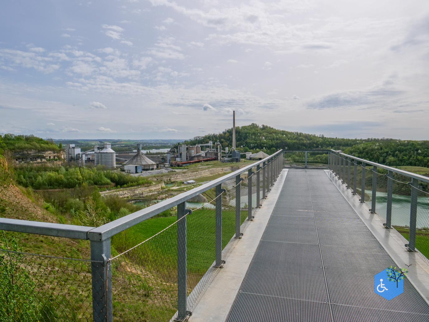 De route gaat verder via de Luikerweg naar het uitkijkplatform over de groeve. Er is een kleine helling naar beneden waarna je op het platform komt dat uitsteekt over de groeve. Tussen 1926 en 2018 werd in dit gebied mergel afgegraven. Mergel is een grondstof voor cement en heel veel Nederlandse huizen zijn dan ook gebouwd met cement dat is gemaakt met de grondstoffen uit dit gebied. Nu er geen mergel meer afgegraven wordt krijgt de natuur de ruimte. De groeve ligt lager dan de Maas, daardoor moet er continue water uit de groeve worden gepompt, anders zou het gebied in een groot meer veranderen. Juist door het gebied leeg te pompen krijgen bijzondere planten- en diersoorten een kans.