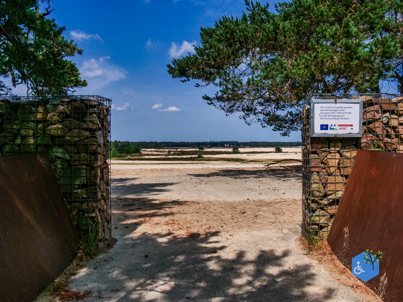 Nationaal Park Loonse en Drunense Duinen is een bijzonder stuifzandlandschap. De bijnaam van het gebied is de Brabantse Sahara vanwege de grote zandvlakte het stuivende zand en de extreme temperatuurverschillen tussen dag en nacht. Tijdens de laatste IJstijd blies de wind zand naar dit gebied en begonnen er bomen te groeien. In de veertiende eeuw werden de bomen gekapt en ontstond er een open vlakte met heide en grassen. Boeren lieten hier hun koeien grazen, maar op het zand groeide de heide en de grassen niet terug, waardoor het gebied een grote zandvlakte werd. Hele dorpen dreigden te verdwijnen onder het zand en er werden bomen geplant om het zand tegen te houden. Zelfs vandaag de dag kun je in het gebied nog bomen vinden waarvan alleen de kruin nog uit het zand steekt. Om de Brabantse Sahara in stand te houden graast er een kudde in het gebied, maar deze zul je op het rolstoelpad waarschijnlijk niet tegenkomen.