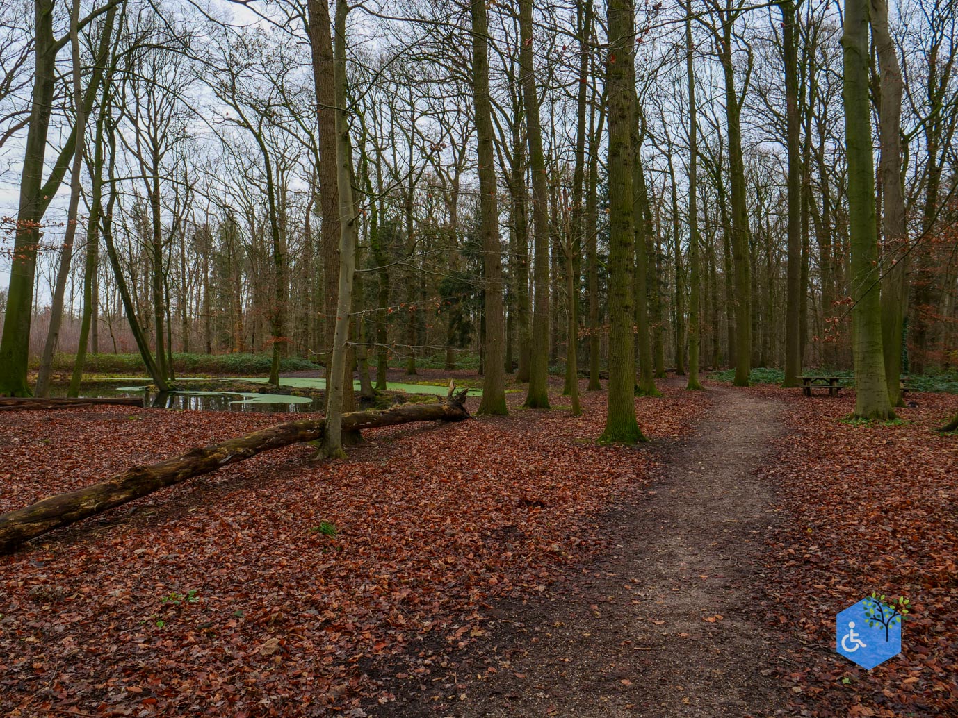 De route start vanaf het parkeerterrein van restaurant De Fazant. Er zijn twee invalidenparkeerplaatsen en binnen openingstijden is er een invalidentoilet beschikbaar. Honden zijn ook welkom, mits niet al te modderig. Vanaf de parkeerplaats zijn wij via het voetpad van De Fazant gelopen, alternatief loop je hier langs een weg waar 80km/u gereden mag worden. Vanaf De Fazant steek je de kruising over, de doodlopende weg in. Hier kom je al snel op het fietspad dat je tot aan het half verharde bospad volgt. Bij het bospad staat een (oude) rolstoeltoegankelijke picknicktafel met rondom half verharding.